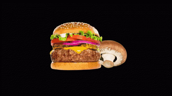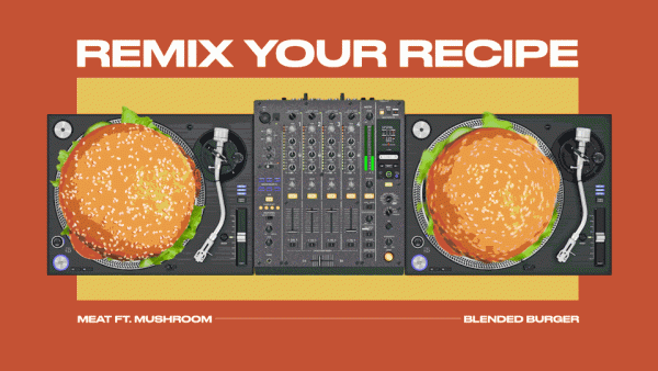 The “Remix Your Recipe” campaign features animated crimini mushrooms cascading down the screen with vocals encouraging people to “Ju-ju-ju-ju-just add ‘shrooms!” and “Leave room for ‘shrooms!” to create tastier burgers.