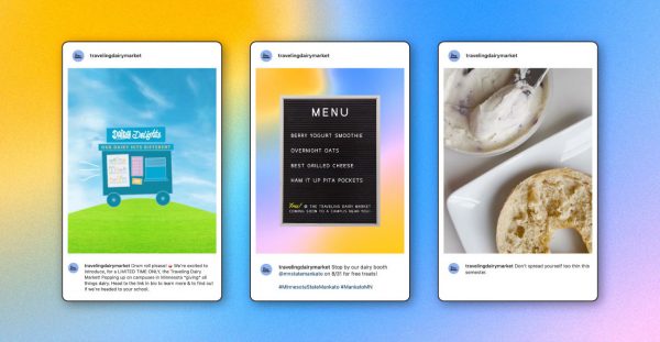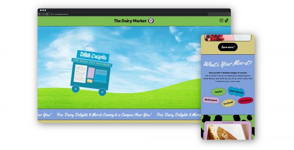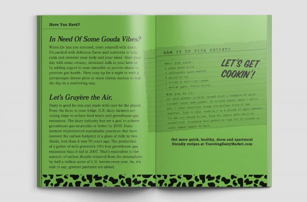 We created a Traveling Dairy Market, which traveled to college campuses within the Minnesota State school system, handing out free dairy items as well as tote bags, stickers, milk frothers and a ‘zine focused on dairy facts and recipes. The activation also included a survey component with each survey resulting in a $10 donation to a local food pantry. This Traveling Dairy Market provided nutrition information as well, encouraging Gen Z to re-examine how dairy fits into their current diets and worldview.